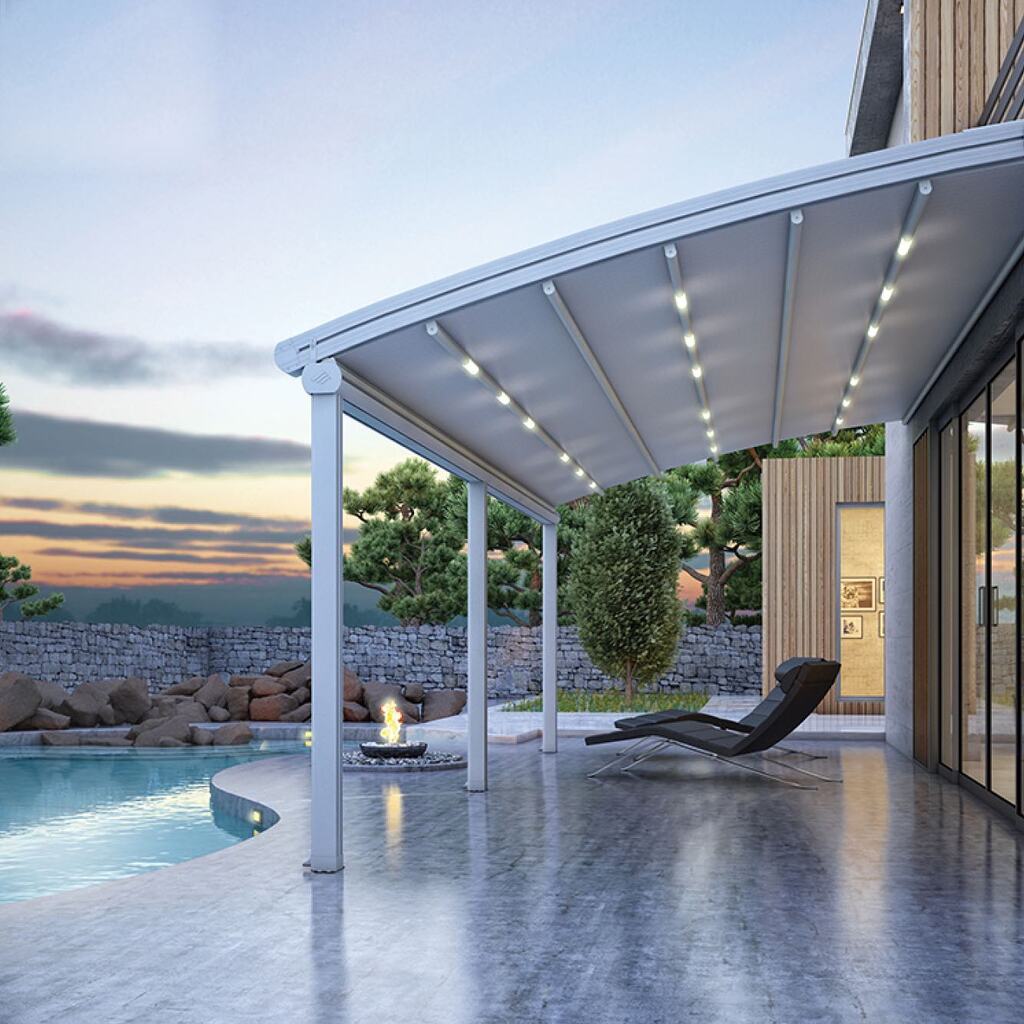 A seamless fusion of form and function. Veluxe retractable pergolas extend your living space with elegant movement and durable fabric, providing full coverage or open sky at your command.