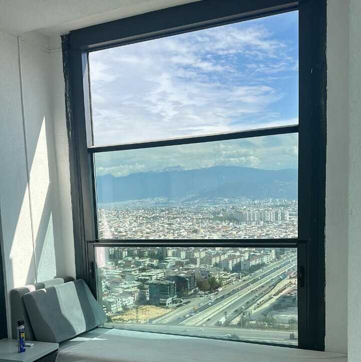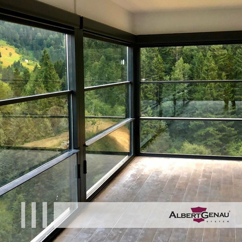 Large glass panels move vertically, offering unobstructed views even in wide spans.